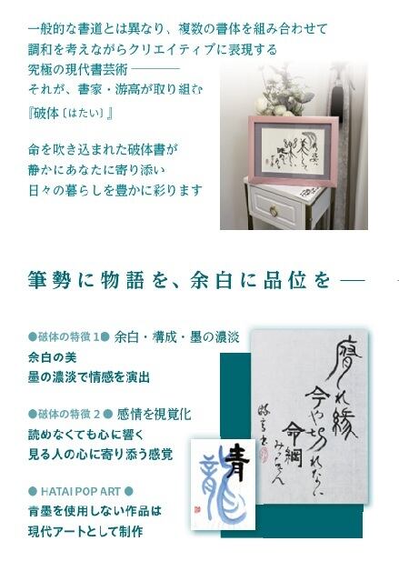 書道と現代アートが融合した游高の作品は、ただ飾るだけではなく、見る人にインスピレーションを与え、会話のきっかけにもなります。